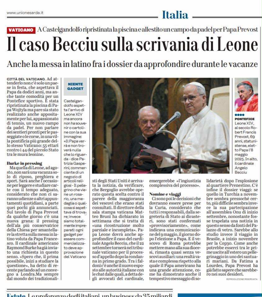 Il caso Becciu sulla scrivania di Leone, in «L'Unione Sarda», 6 luglio 2025.