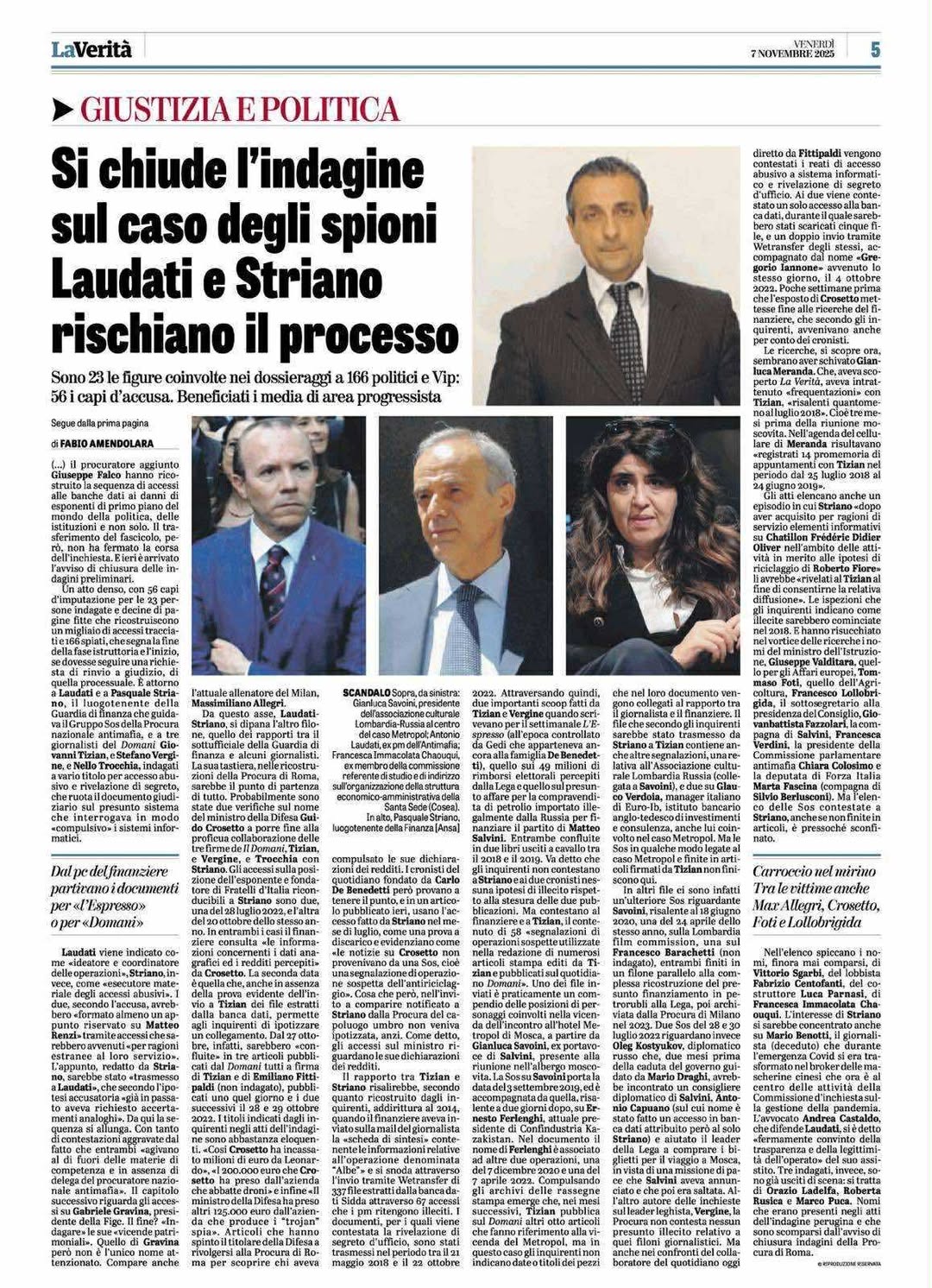 Gianni Di Capua, Dossieraggio, la Procura di Roma ha chiuso le indagini. Laudati e Striano rischiano il processo, in «Il Tempo», 6 novmbre 2025. Non dovrebbe essere tanto difficile trovare i mandanti dentro il Vaticano.