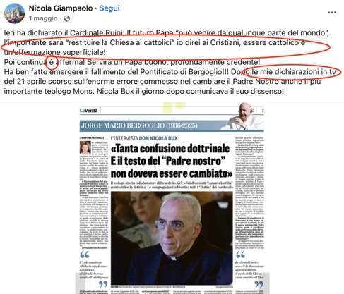 Mistero della fede: perché nessun giornale oggi ha riportato la notizia della condanna di Nicola Giampaolo, colpevole di aver calunniato il cardinale Angelo Becciu?, in «Dagospia», 30 ottobre 2025. Tutti con la coda di paglia? Mi sa che non si salva nessuno, dei grandi giornali (tanto meno quelli "cattolici")!
